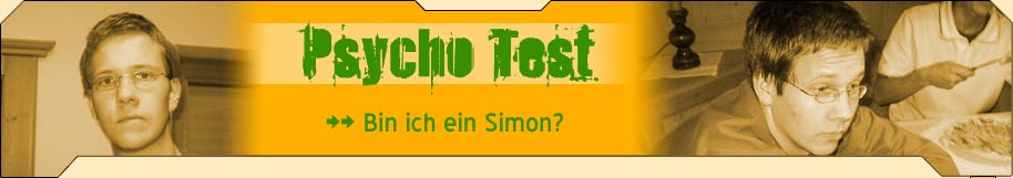 A: "Es muss endlich eine neue Bildungsreform durchgeführt werden!" B: "Wir müssen die Renten sichern!" C: "Alle Kroaten in Deutschland müssen ab sofort einen Stern gut erkennbar auf der linken Brust tragen!" ___________________________________________________________________________________ Frage2: Welcher Ausdruck trifft dieses Bild deiner Meinung nach am besten? A: Ekelerregend B: Total abstoßend C: goldig ___________________________________________________________________________________ Frage 3: Du bist in einem Kühlraum bei -30° C eingeschlossen. Was tust du? A: Ich schreie um Hilfe und schlage gegen die Tür B: Ich suche mir die Zutaten um eine Türbombe zu bauen C: Ich suche den Kühlraum ab, ob ich nicht irgendwo ein Eis finde (am besten einen Freundschaftsbecher) ___________________________________________________________________________________ Frage 4: Du wirst auf der Straße überfallen, der Angreifer bedroht dich mit einer Pistole und verlangt dass du ihm all dein Geld gibst. Wie reagierst du? A: Ich tue lieber was er sagt, bevor ich noch Schaden nehme B: Ich wende meine Karatekünste an und schlage ihn so in die Flucht C: Ich sage "MHM", schüttle den Kopf und zeige ihm einen Vogel ___________________________________________________________________________________ Frage 5: Welche 3 Dinge würdest du auf eine einsame Insel mitnehmen? A: Ein gutes Buch, meine Freundin und ein Spiel B: Ordentlich Bier, ordentlich Aspirin und ein ordentliches Bett C: Generals, Isso und Micha ___________________________________________________________________________________ Frage 6: Du wirst angehalten, weil du in einer 30iger-Zone zu schnell warst. Was sagst du? A: "Tut mir Leid Herr Wachtmeister, es wird nicht mehr vorkommen" B: "Ich weiß ich war zu schnell, verzeihen Sie." C: "Es gibt Geschwindigkeitsbegrenzungen für Fußgänger?" ___________________________________________________________________________________ Frage 7: Dein Freund wird vor deinen Augen von einem Auto angefahren und liegt blutend auf der Straße. Was tust du? A: Ich rufe sofort einen Notarzt B: Ich checke den Puls und wende meine Kenntnisse aus dem Erste-Hilfe-Kurs an C: Ich zerre ihn hoch und sage "Haja komm, jetz stellsch dich net so an!!" ___________________________________________________________________________________ Frage 8: Ein Kumpel sagt zu dir: "Wenn du aus dem Fenster springst, geb ich dir einen Kaugummi!" Wie reagierst du? A: Du erklärst ihn für völlig verrückt und gehst weg B: Du sagst "MHM", schüttelst den Kopf und zeigst ihm einen Vogel C: Du legst den Finger auf den Mund, schaust nach unten, überlegst 2 Minuten und fragst ob du auch 2 Kaugummis haben kannst ___________________________________________________________________________________ Frage 9: Welche dieser Chatzeilen könnte von dir sein? A: XXX (10:50 PM) : Hallo, wie gehts? B: XXX (10:50 PM) : Na, whazup? C: XXX (10:50 PM) : HALLO!!!!!!!!!!!!!!!!!!!!!!! XXX (10:50 PM) : Morrrriiiiss??????????????????????????????????????????????????????????????????????? XXX (10:50 PM) : Spielst du mit ne Runde Schänni?????????????????? XXX (10:50 PM) : Hallo!!!!!!!!!!!!!!!!!!!!!!!!!!!!!!!!!!!!!!!! XXX (10:50 PM) : Morris, nich da???????? :( :( :( XXX (10:50 PM) : Doofhirn XXX (10:50 PM) : Ultraarsch XXX (10:50 PM) : Fettblödkopf ___________________________________________________________________________________ Frage 10: Was ist dein liebstes Fussballied? A: Die deutsche Nationalhymne B: Es gibt nur ein Rudi Völler C: Nie mehr zweite Liga ___________________________________________________________________________________ Frage 11: Ein Atomkraftwerk in Deutschland ist explodiert und es gibt einen nuklearen Sommer. Die Temperaturen betragen im Schnitt um die 60° C. Was tust du? A: Ich reibe mich dick mit Sonnencreme ein und reiße mir alle Kleider vom Leib B: Ich versuche, mich an einem sonnengeschützten Platz aufzuhalten C: Ich fange an zu frieren und ziehe mir einen Pullover über ___________________________________________________________________________________ Frage 12: Du liest in der Zeitung von einem terroristischen Anschlag auf New York. Was denkst du? A: "Oh Gott, der Terrorismus macht vor nichts halt" B: "Diese Terroristenschweine, ich würde sie am liebsten alle umbringen" C: "Scheiße, sie habens gemerkt" ___________________________________________________________________________________ Frage 13: Ein heißes Mädel kommt in der Stadt auf dich zu und spricht dich an. Sie sagt "Hey ich hab dich die ganze Zeit gewatcht und dachte du bist ein recht sweeter Boy, willst du vielleicht ein wenig mit mir abchillen?" Wie reagierst du? A: Du sagst "Klar babe, gegen die suggestion hätt ich absolutely nothing einzuwenden" B: Du sagst "Ja klar, warum nicht?" C: Du sagst "Abchillen also, MHM", schüttelst den Kopf und tippst dir an die Stirn ___________________________________________________________________________________ Frage 14: Ein guter Freund liegt mit ausgerenktem Knie im Krankenhaus und kann deshalb nicht in den gemeinsamen Urlaub nach Frankreich. Wie munterst du ihn auf? A: Ich lüge und sage, dass es sowieso nicht so toll wird B: Ich sage, dass er ja nächstes Jahr wieder mit kann C: Ich frage ob es ihm eigentlich was ausmacht, dass er nicht mit kann, weil es schon ziemlich geil da werden wird, immer Sonne, Mädchen und Alkohol ohne Ende ___________________________________________________________________________________ Frage 15: Was ist für dich das wichtigste Gebäude Deutschlands? A: Bundestag B: Pure Platinum C: Isso ___________________________________________________________________________________